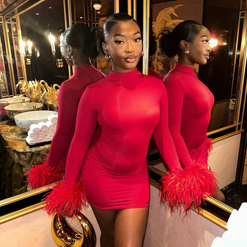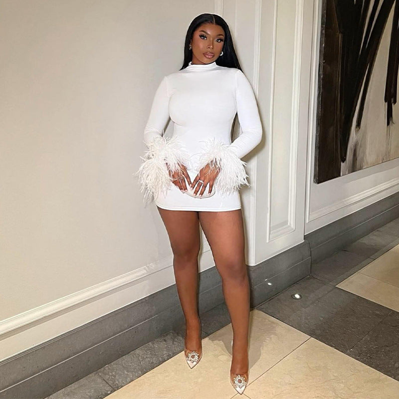 Feather Flirt – Round Neck Slim Fit Mini Dress