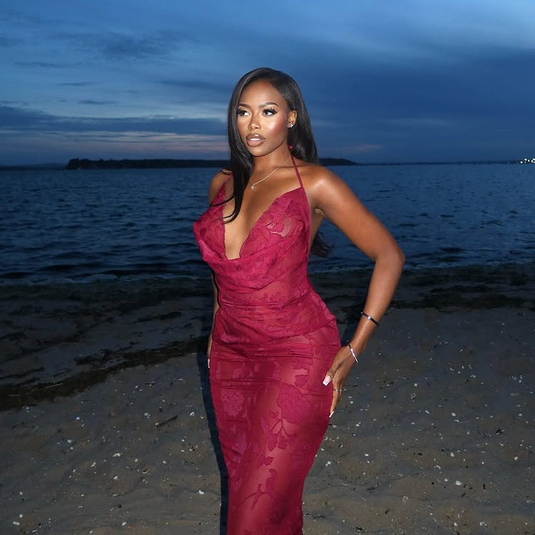 Turn every entrance into a moment. The Golden Hour Backless Maxi Dress is crafted to sculpt, drape, and highlight your silhouette from every angle. Featuring a sultry halter neckline, elegant open-back design, and flowing jacquard fabric, this dress is made for luxury nights, rooftop dinners, and unforgettable memories.