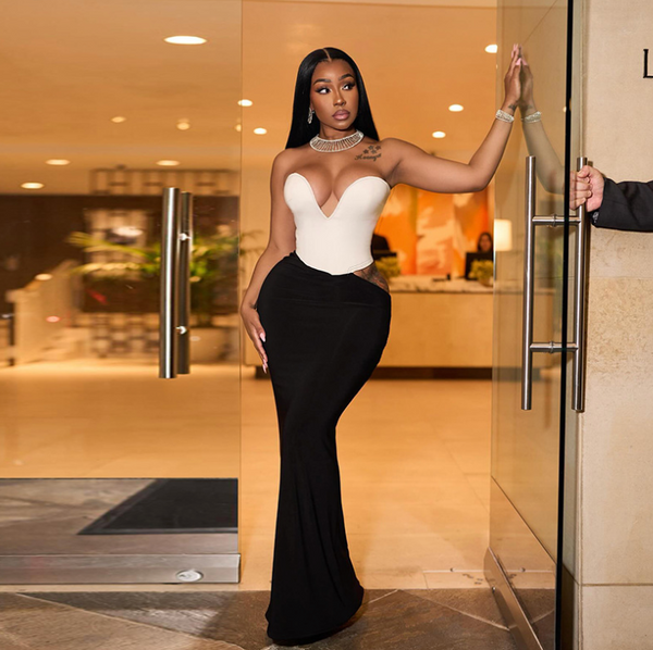 Make your entrance unforgettable with the Temptress Maxi, a bold fusion of allure and sophistication. This strappy slit gown features a sculpting mesh finish and a thigh-high slit that commands attention from every angle. Designed for those who move with confidence and dress like luxury is their lifestyle.
